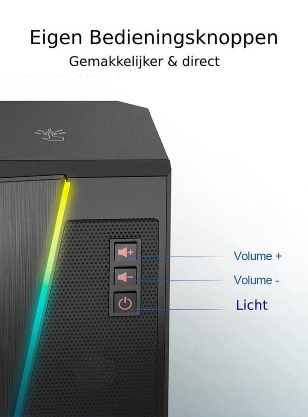 Verbeter je spelervaring en gaming resultaten door deze geweldige PC speakers. Het gevoel alsof je midden in het spel zit doordat het geluid als echt doorkomt. Met de lichteffecten erbij zijn deze boksen de aanwinst voor jouw spelkamer of voor je huiskamer, zodat je home surround audio bij je films kunt horen. Speciaal: de USB-aansluiting staat toe dat je de luidsprekers met zowel tv, als ook PC, laptop, tablet en telefoon kunt verbinden.