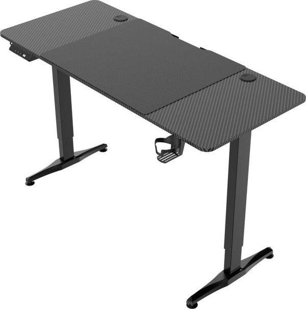 Dit kwalitatief zeer stevige en hoogwaardige elektrisch in hoogte verstelbare zit sta game bureau met een zwart frame en een zwart carbon look tafelblad mag niet ontbreken in uw gaming set up. Het formaat van het bureau blad 140 cm breed en 60 cm diep geeft voldoende ruimte voor het plaatsen van al uw game accessoires en monitoren. Dit elektrisch verstelbare gaming bureau heeft een stevig zwart in hoogte verstelbaar frame van 74 cm tot 119 cm zodat u naar eigen wens de hoogte kunt instellen en zelf staand aan het bureau uw games kunt spelen of kunt werken aan uw computer. Het bureaublad is gemaakt van meubelpaneel met een melamine carbon look toplaag en een goede kwaliteit muismatdie het bureaublad gedeeltelijk bedekt. Het kabelbeheersysteem zorgt ervoor dat je de kabels mooi en veilig kunt opbergen en organiseren en je bureau een mooie en nette look blijft houden. Dit elektrisch zit sta bureau is natuurlijk ook uitermate geschikt als werkbureau op kantoor op scholen voor uw werkplek in uw eigen huis of ieder andere kantoorruimte woonruimte of bedrijfsruimte. Maximaal draaggewicht van dit gaming bureau is 80 kg. Formaat van dit bureau is 140 cm breed 60 cm diep en in hoogte verstelbaar van 74 cm tot 119 cm hoog. Kleur zwart frame met zwart bureaublad en zwarte muismat. Levering inclusief montage instructie en benodigde onderdelen + bekerhouder. EXCLUSIEF overige accessoires op de voorbeeldfoto's.